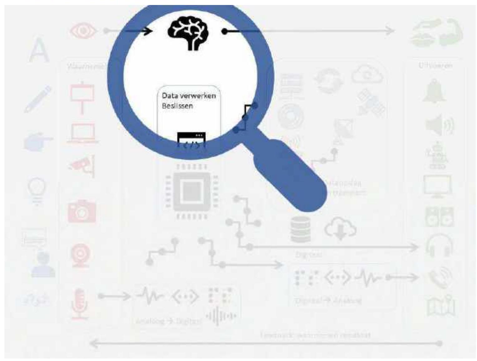 Digitale apparaten verwerken informatie en beslissen wat er met die informatie moet gebeuren. Dat gebeurt allemaal in chips, waarvan een processor er ook een is. Dat is de hardware. Informatie kan opgeslagen worden, doorgestuurd of naar actuatoren (scherm, printer, luidspreker etc.). De chip kan een vaste bedrading hebben, waardoor telkens dezelfde bewerking wordt gedaan. Een programmeerbare chip kan telkens andere taken of bewerkingen uitvoeren. De instructies hiervoor zijn gecodeerd in de software. We kijken hoe die chips gemaakt worden.